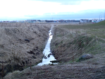 どぶ川からも湯気が。