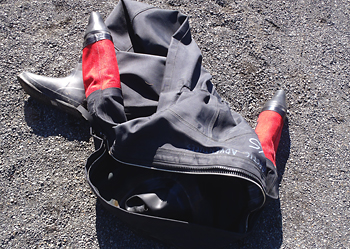 このドライスーツ、ドライと言うだけあって手首と首のゴムの締め付けが半端でない。
