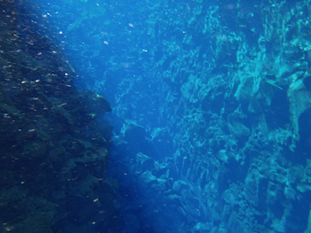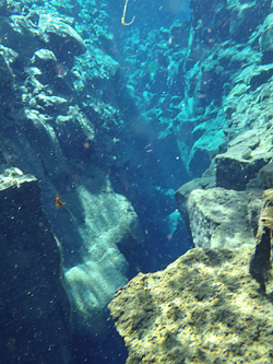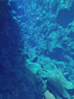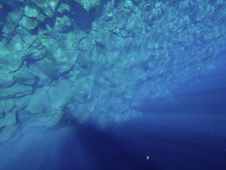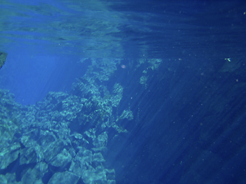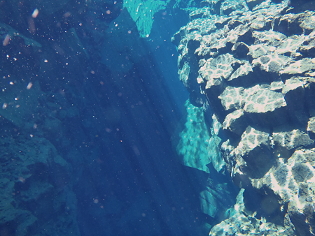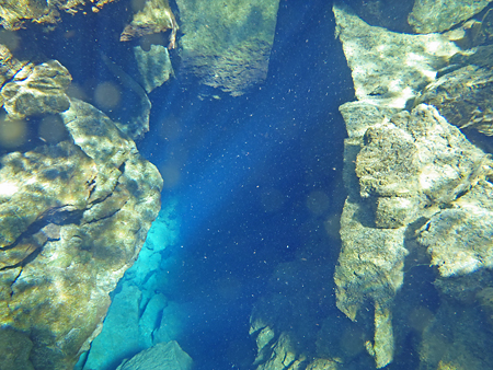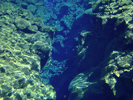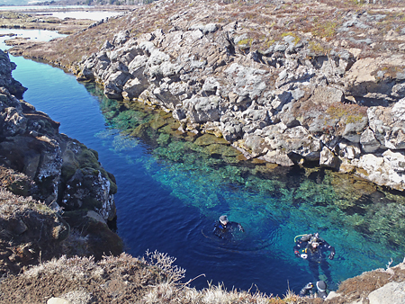 北米プレートとユーラシアプレートの境界の裂け目を泳ぐのだ。
