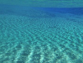 あまりに透明度が高すぎて、どこが上なのかもわからない。