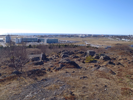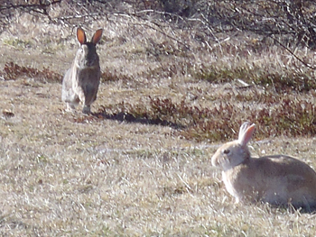 行きは雑木林コースだったが、帰りは開けているコースで丘を降りたらこんな岩場があった。