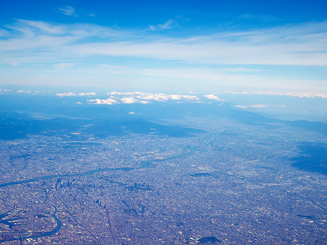 飛行機は大阪湾を旋回した後北に向けて飛んでいく。