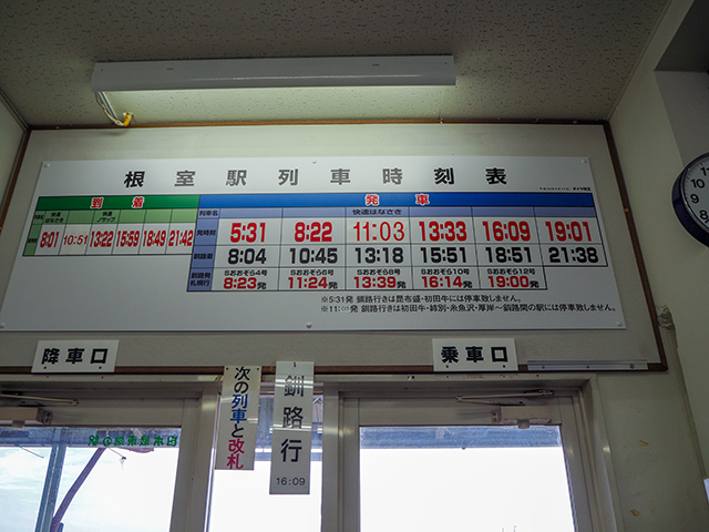 根室駅は危険防止のため列車が来て乗客が降りてからの改札となる。