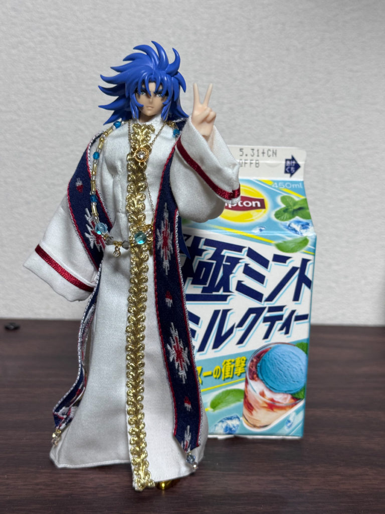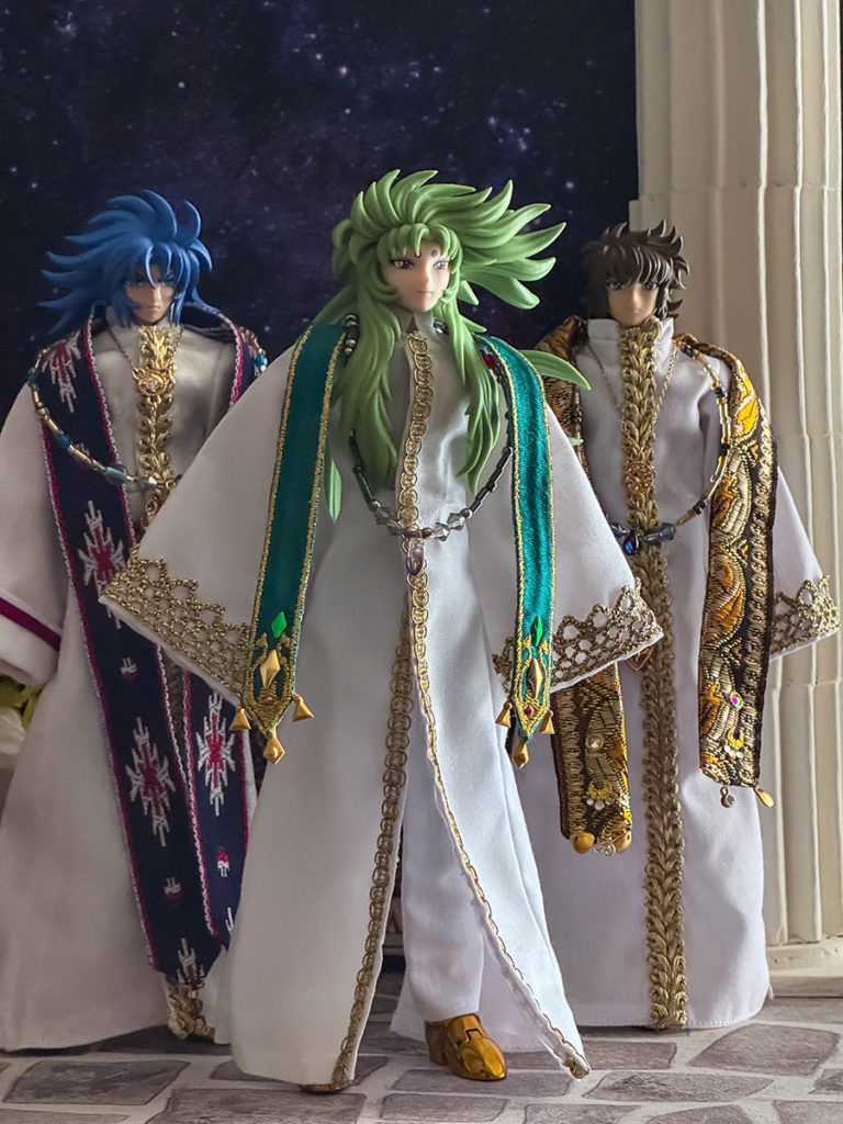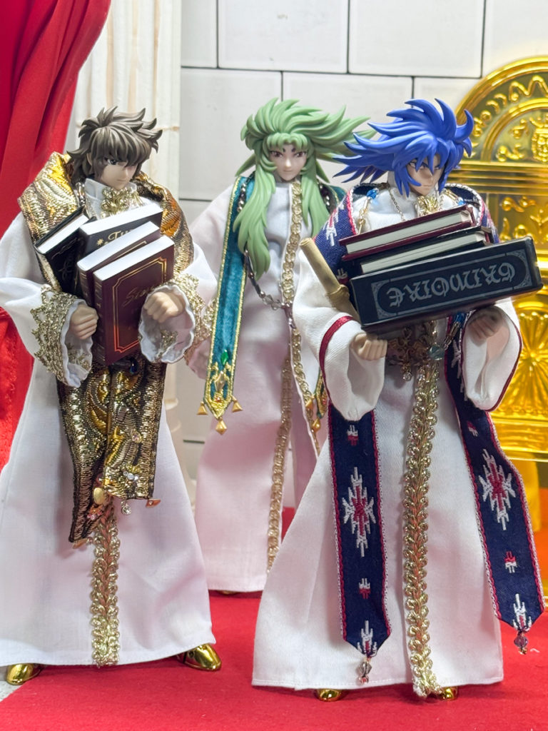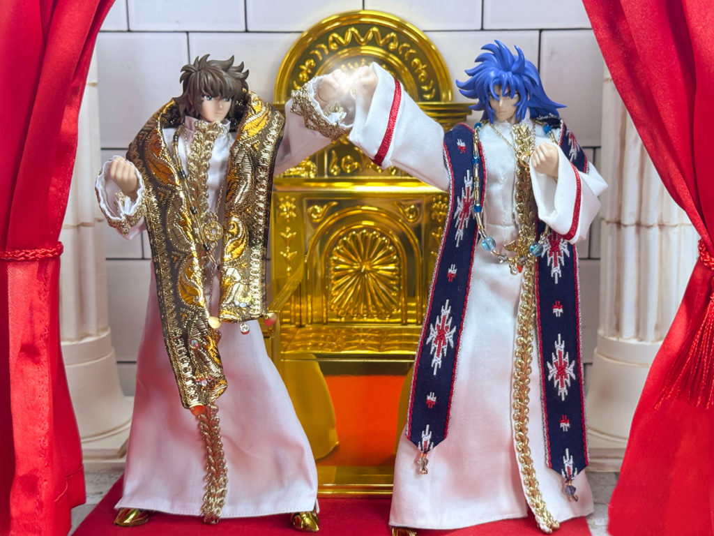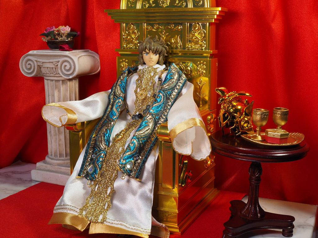 そんなアイオロスは長年公式の教皇服(サガのお下がり)を着ていましたが、神造形のアッペンアイオロスに専用の白法衣がないのは損失だろうと一念発起して作りました。