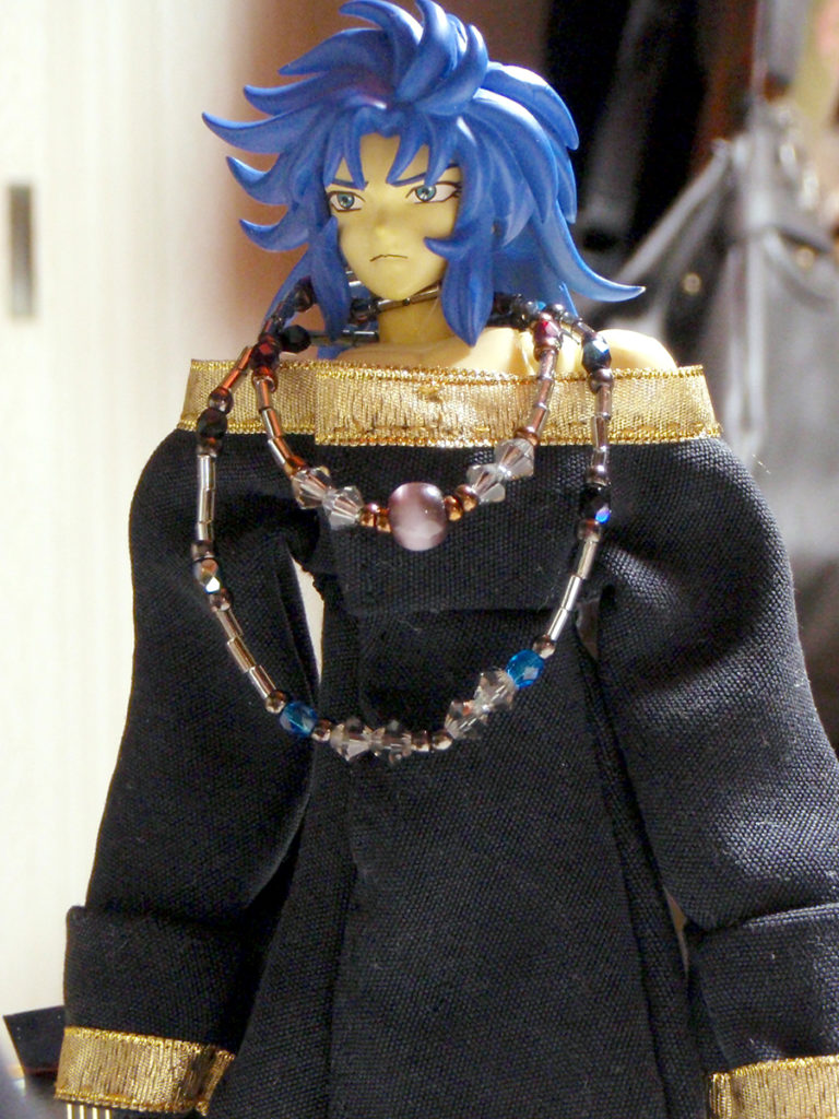 作中に多く登場する衣装で、バンダイもサガやシオンのマイスに布製の服を付属させています。