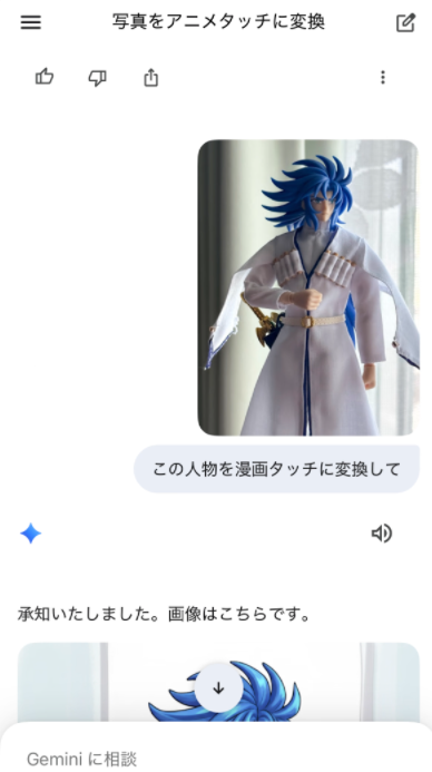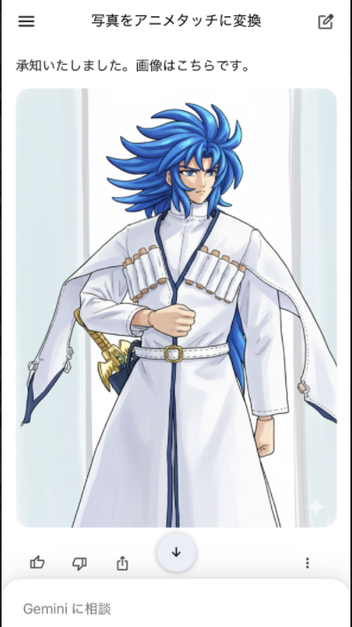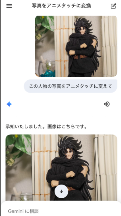 まずは、写真をイラストにするために「アニメタッチにして」と指示してみた。