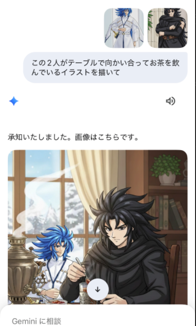 また、公式イラストを取り込んで、自分の好きなシチュエーションを生成することも技術的にはできてしまいます。