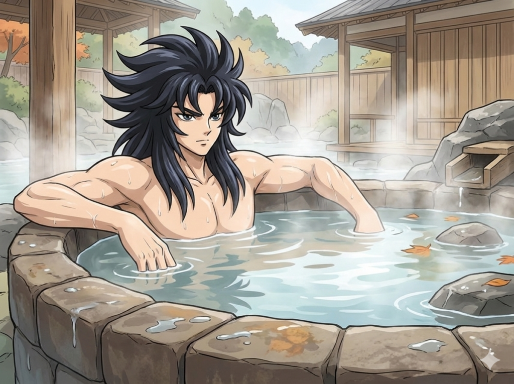 「ガルーダのアイアコスが入浴しています」と言われても誰も疑わない構図。